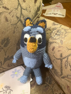 The biggest project I made over break what the crocheted Bluey. This was from "Chiliphilly" on the official Bluey ABC (Australian Broadcasting) website.